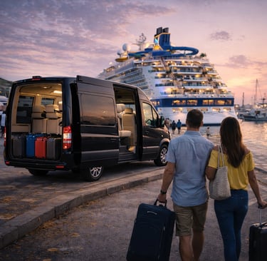 Transporte executivo para embarque e desembarque em principais terminais marítimos.